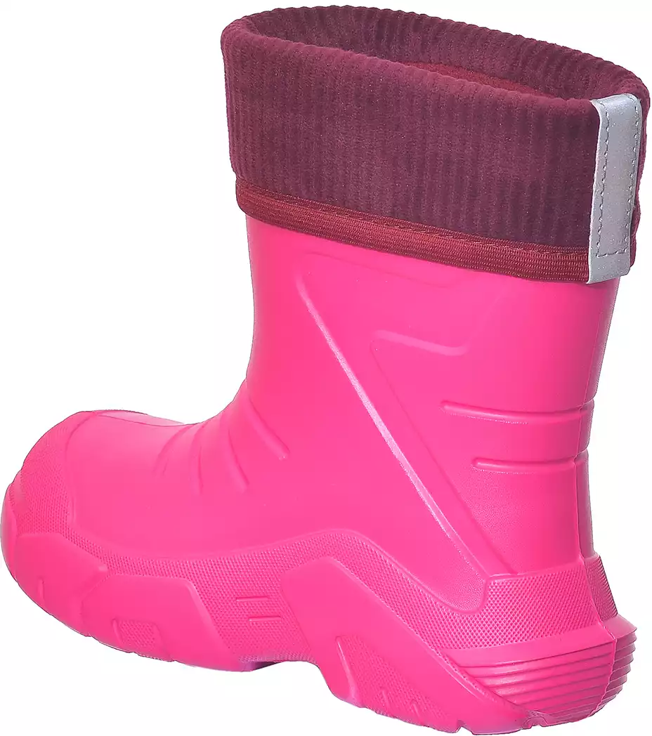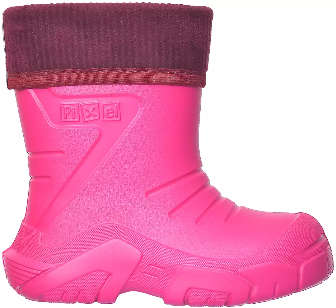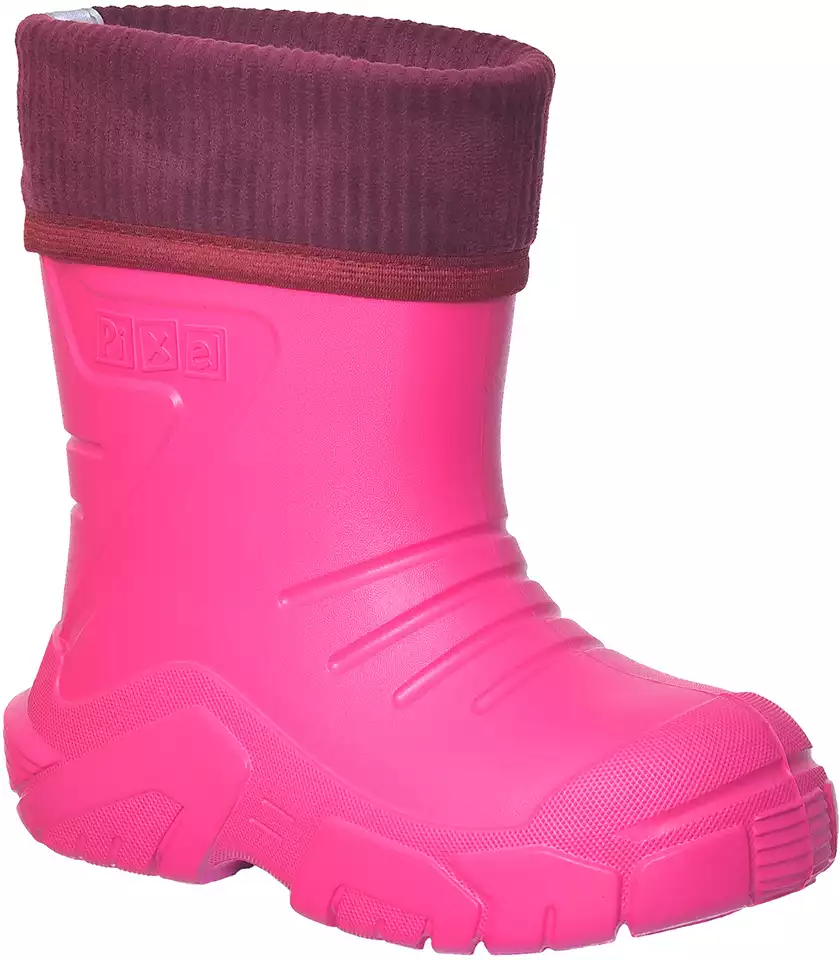Непромокаемые сапоги из ЭВА Pixel со флисовым сьемным чулком. На отвороте чулка пришита светоотражающая лента. Стелька дублирована поролоном достаточной толщины, чтобы амортизировать ударную волну шага. Снаружи поролон закрыт нетканым полотном, которое отвечает за износостойкость. Комбинированный протектор на подошве хорошо сцепляется с поверхностью, боковые ступеньки не собирают грязь в подошве.