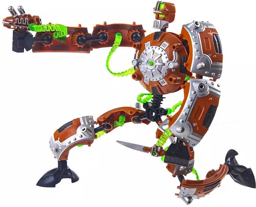 Огромный робот высотой 33 см состоит из 33 деталей и собирается из энергосферы размером 11,5 см. Трансформер обладает уникальной подвижностью - 14 шарниров позволяют придавать роботу любые позы и фиксировать его в них, что значительно расширяет возможности игры и взаимодействия с игрушкой. Робота можно разместить на полке или на столе зафиксировав в определенной позе или, например, снимать зрелешные видео в технике стоп-моушен.