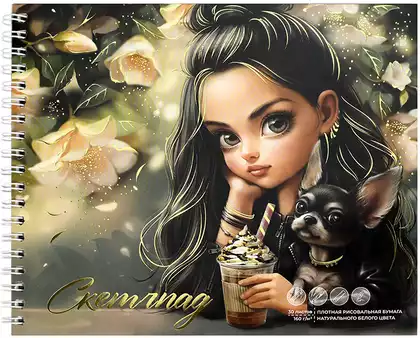 Альбом для рисования акварелью 20л Котики бывают разными 210х210мм отрывная склейка Hatber 086710, 430956