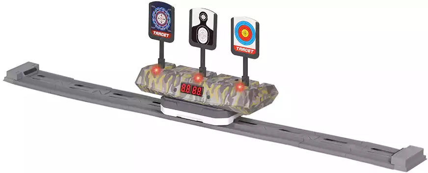 Код: 345043Электронный тир 4в1. Электронное табло автоматически считает очки за попадания от 1 до 100- имеет несколько реалистичных звуков выстрела,различные звуковые эффекты при сбивании всех мишеней и победе.При попадании так же мигает лампочка.Когда все цели будут сбиты,они поднимутся автоматически.также двигается по горизонтали.У электронной мишени есть два режима.Режим А она двигается туда-сюда меняя направление каждые 5 секунд, при этом не обязательно доходя до конца дорожки, Режим Б мишень для пулек двигается от края до края дорожки.Так же можно выключить салазки, детская мишень будет в таком случае неподвижна.В неподвижном режиме игрушечная мишень так же считает очки, у нее работает автоподъем мишеней после выбивания.Попади 100 раз и ты - победитель!Наслаждайся звуками аплодисментов!Способствует развитию меткости и моторных навыков.Подходит для всех моделей стрел и шариков.Размер игрушки:125х16х23см.Игрушка мишень работает от 3хАА,салазки для мишени от 4хАА.Батареи в комплект не входят.