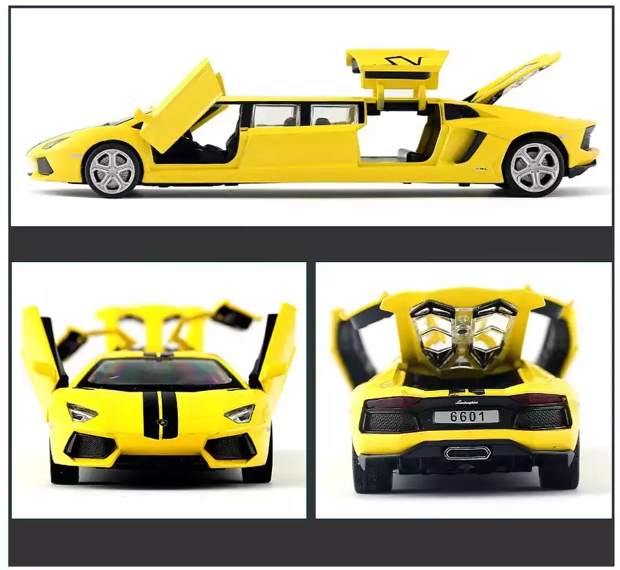 Код: 379663Кто не любит крутые тачки? Модельки машинок славятся совей популярностью среди взрослых, а также детей и эта коллекционная машинка, роскошный лимузин Lamborghini, отлично дополнит коллекцию. Металлическая масштабная модель Ламборгини 1:32 (23см) точно детализирована. Качественный сплав металлов, резина и пластик придают модели дорогой и благородный вид. Интерактивная машинка копирует оригинальный автомобиль, в ней открываются передние и задние двери, багажник, а также крутятся колеса. При нажатии на капот или открытии дверей машина издает звуковые и световые сигналы. Модель оснащена инерционным механизмом, который разгоняет игрушечную машинку на расстояние до 10 метров. Инерционную машинку можно использовать как игрушку и коллекционную модель. Металлические машинки с открывающимися дверями-отличный подарок на новый год или любой другой праздник. Игрушки машинки для мальчиков отличное развлечение в свободное время! Мини машинки идеальное решение для подарка детям!