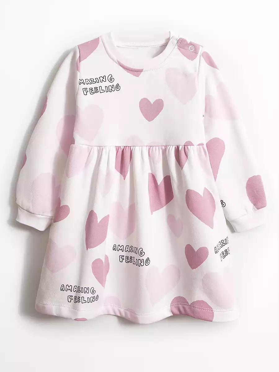 Красивое теплое платье выполнено из футера с начесом высшего качества. Длинный рукав, контрастный принт, комфорт во время носки и гипоаллергенность делают данную модель прекрасным дополнением базового гардероба для девочек. Идеально как осеннее или весеннее повседневное хлопковое платье для прогулок в теплое время года или на любой праздник.