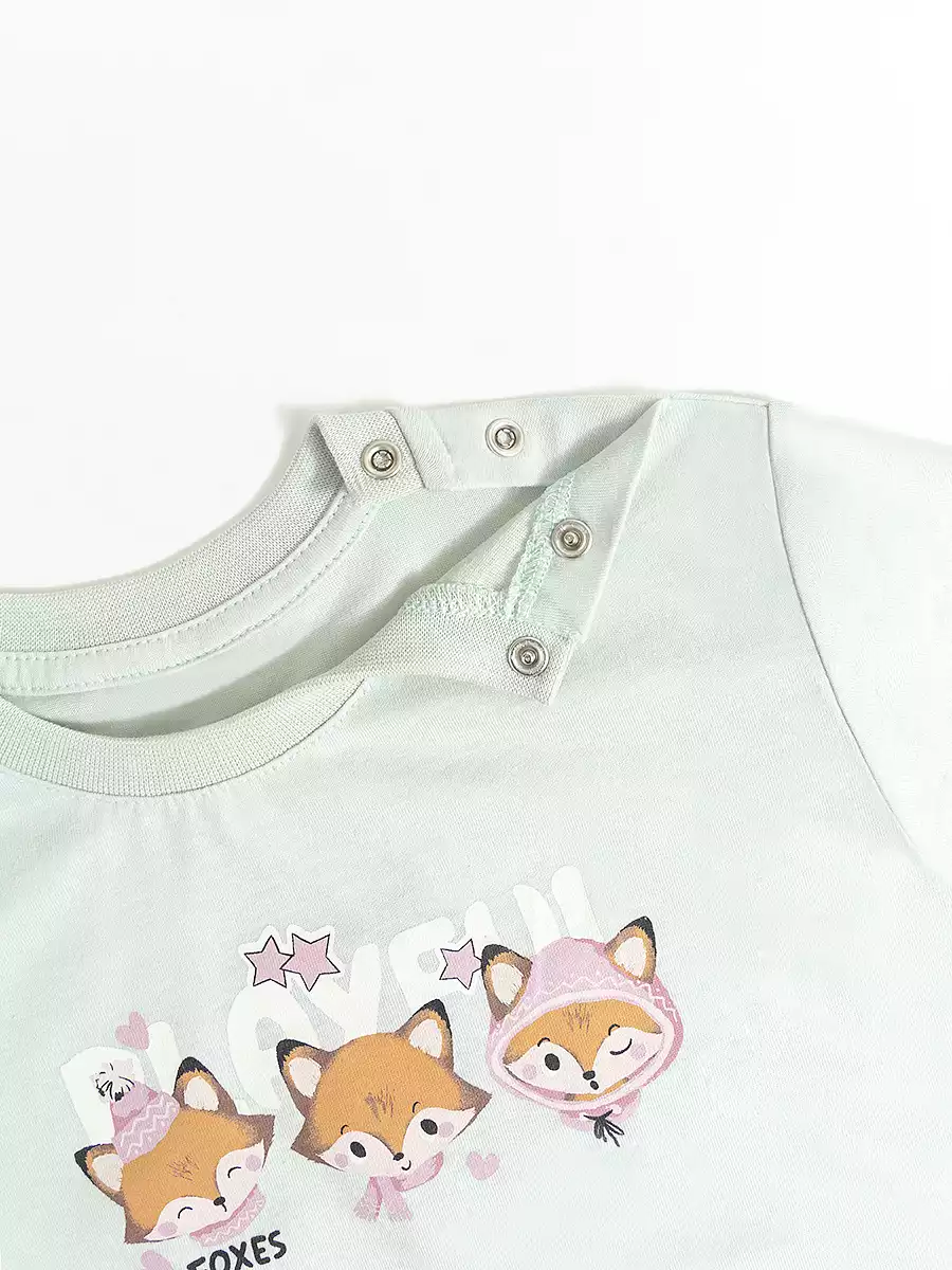 Оригинальная футболка из натурального хлопка - свободный прямой силуэт, приспущенная линия плеча, чуть увеличенные длина и объём рукава. Горловина округлой формы. Футболка с забавным принтом обязательно понравится вашей малышке. Вещь отлично сочетается с различной одеждой и пригодится для создания различных образов вашей доченьки.