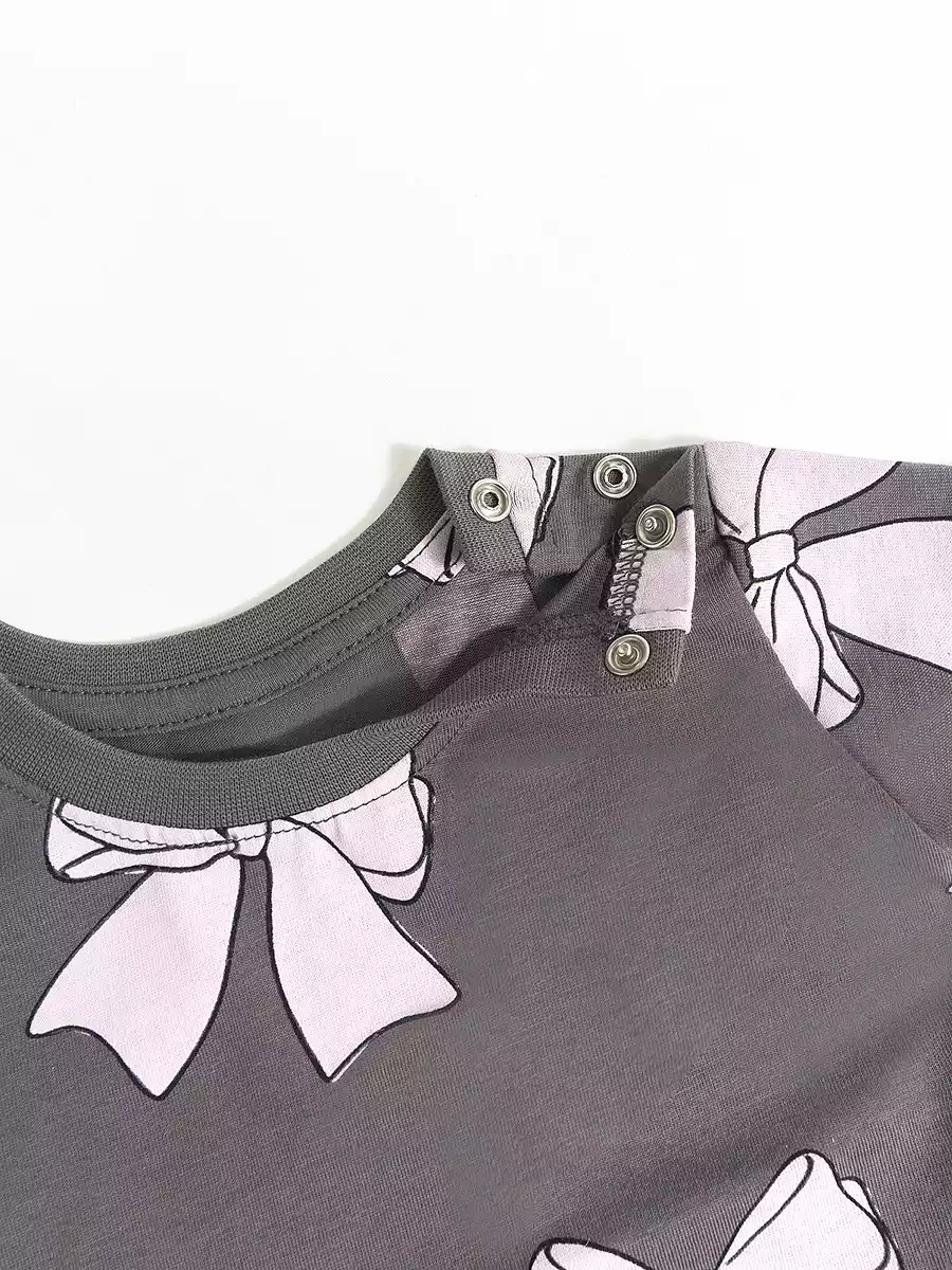 Оригинальная футболка из натурального хлопка - свободный прямой силуэт, приспущенная линия плеча, чуть увеличенные длина и объём рукава. Горловина округлой формы. Футболка с принтами банты обязательно понравится вашей малышке. Вещь отлично сочетается с различной одеждой и пригодится для создания различных образов вашей доченьки.