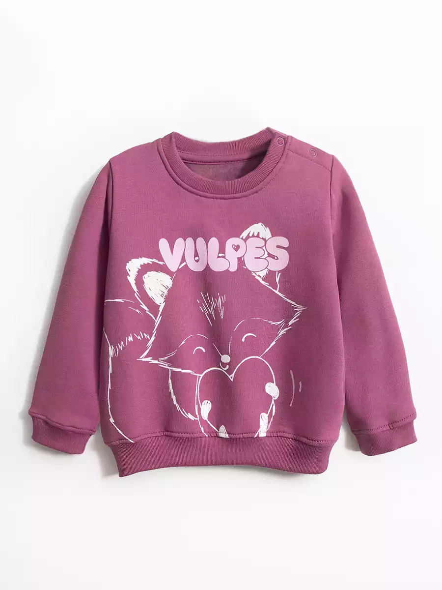 Трикотажный свитшот с контрастным принтом для малышки, выполненный из мягкого футера с начесом, который прост в уходе, хорошо пропускает воздух и комфортен в носке. Актуальный свободный крой с заниженной линией плеча не сковывает движения и позволяет ребенку быть активным. Изделие дополнено круглым вырезом горловины и длинными объемными рукавами. Горловина, манжеты и пояс оформлены рельефной резинкой.