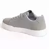 Базовые мужские кеды в сдержанном сером цвете – практичное решение для повседневной носки. Верх выполнен из сочетания искусственной кожи и текстиля, что обеспечивает оптимальный баланс между прочностью и воздухопроницаемостью. Внутри подкладка и стелька выполнены из мягкого текстиля, создающего дополнительный комфорт во время ходьбы. Классический шнурок позволяет надежно зафиксировать обувь на ноге.